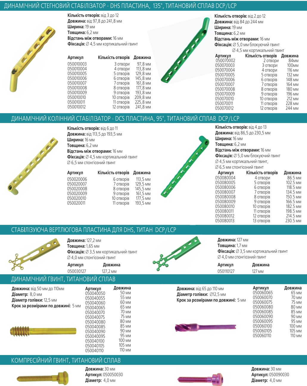 ДИНАМІЧНИЙ СТЕГНОВИЙ СТАБІЛІЗАТОР – DNS ПЛАСТИНА, 135°, ТИТАНОВИЙ СПЛАВ